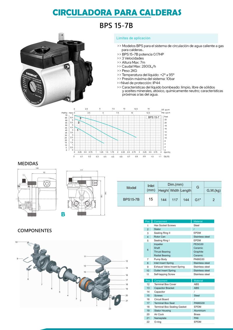 Características del líquido bombeado: limpio, libre de sólidos y aceites minerales, atóxico, químicamente neutro; características próximas a las del agua.